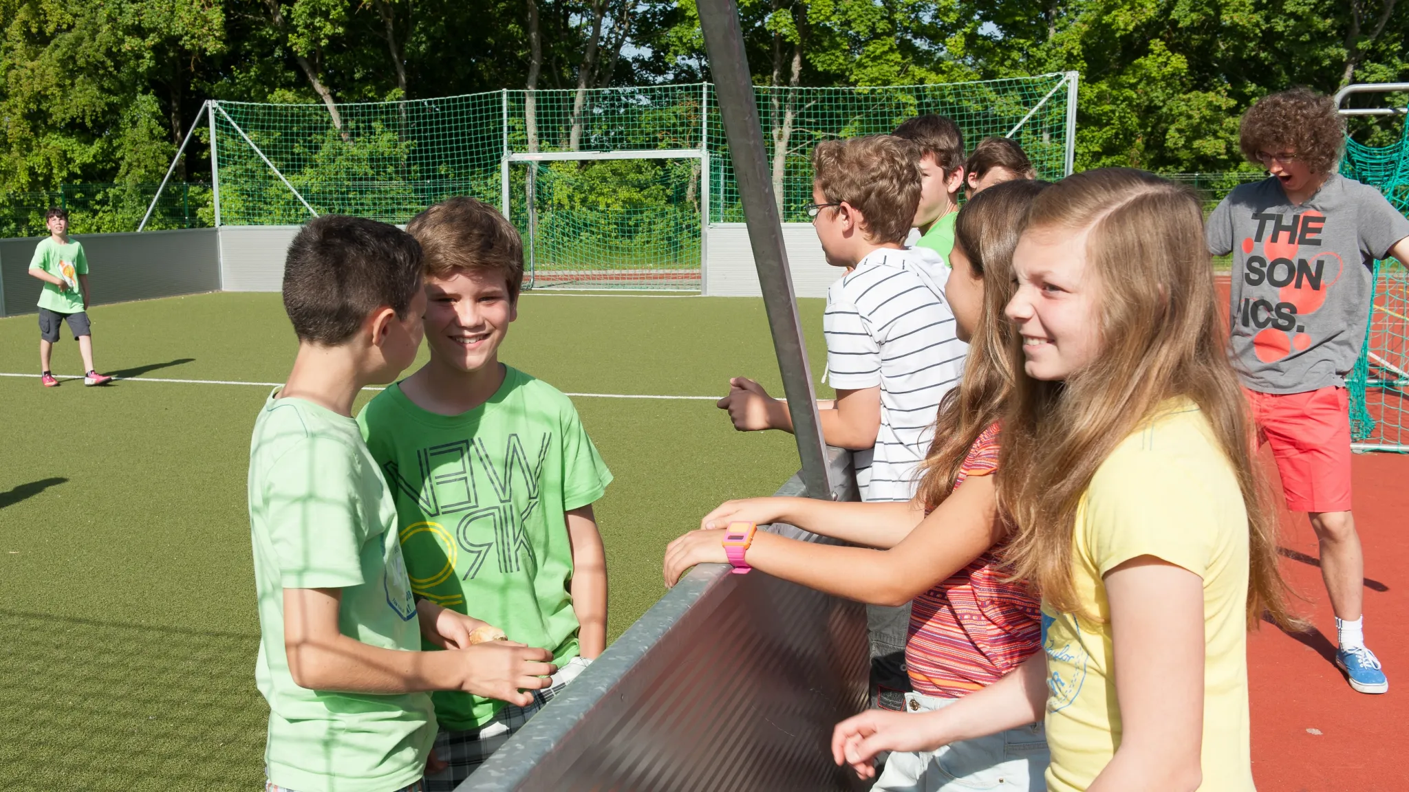 - Für die Mittagspause nach dem Essen sind Spiel- und Sportangebote vorhanden. Die Schüler dürfen sich frei auf dem Schulgelände aufhalten.