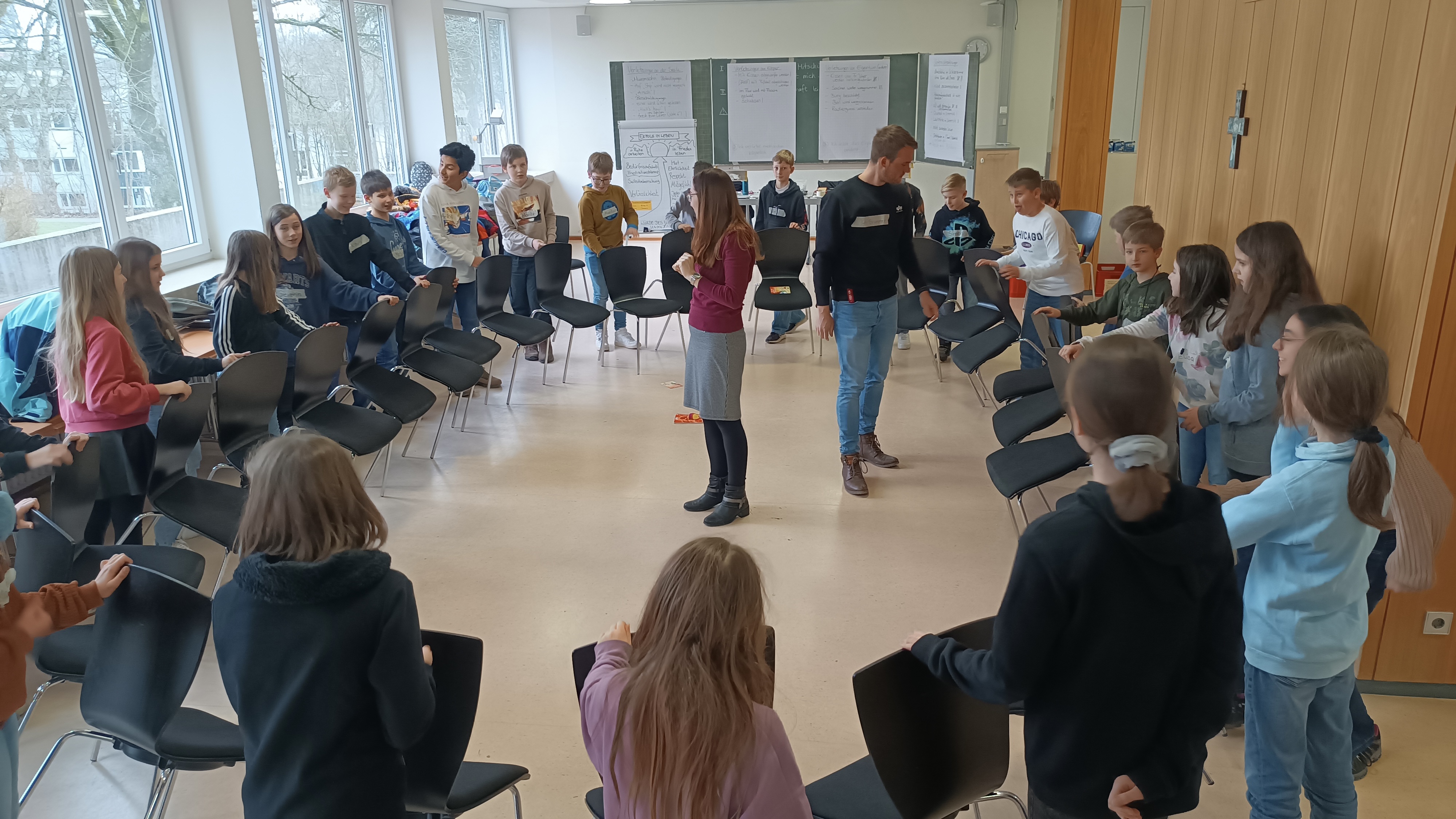 Teil unseres Präventionscurriculums ist das Sozialtraining, welches wir in allen 5. Klassen durchführen. Dabei geht es unter anderem um eine gute Klassengemeinschaft.